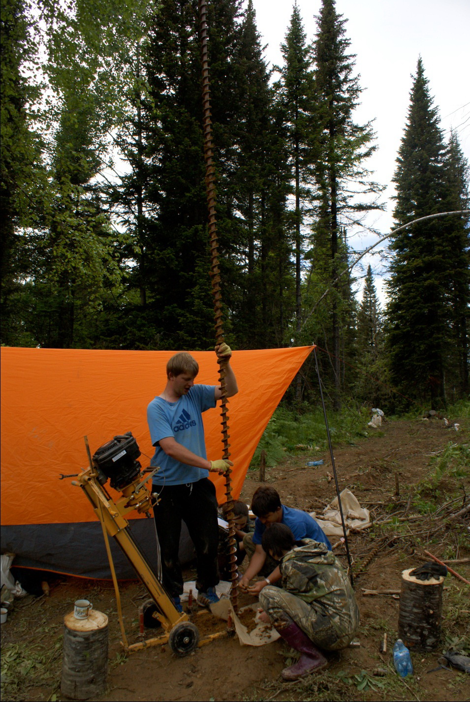 мобильная буровая установка КМ-10И, оснащенная шнековыми снарядами, позволяющее осуществлять бурение скважин в рыхлых отложениях глубиной до 10 метров без промывки